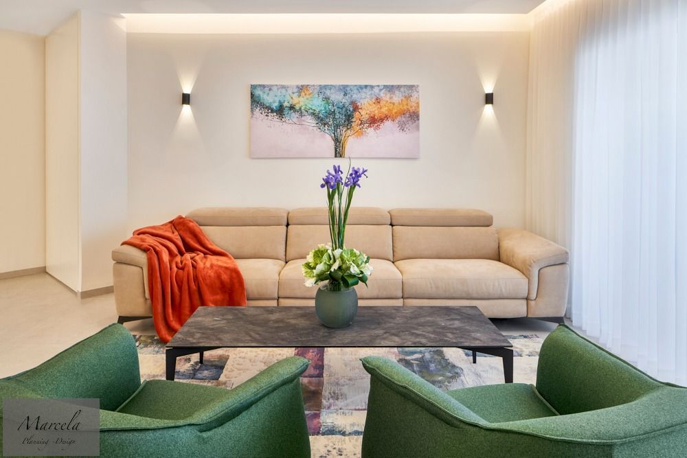 דירת קבלן שקיבלה התאמה מושלמת לזוג לקוחות מקסים. גופי התאורה בחלל הציבורי עוצבו ותוכננו על ידי.מהשורש הכל שונה ותוכנן בקפידה מירבית :אינסטלציה,חשמל,תאורה,הנמכות,מיזוג,פתחים,בית חכם ועוד.הכל תוכן ועוצב בצורה פונקציונלית במקסימום,עם קשב רב לצרכים לזוג מבוגרים שמהרגע הראשון כבשו את ליבי. צילום : ליאור טייטלר