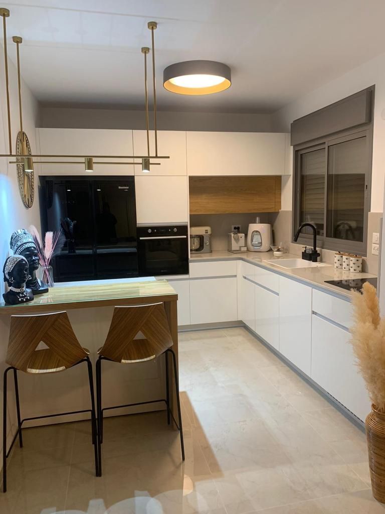 דירת קבלן לזוג צעיר בתחילת הדרך שחיכתה שאשלים את המלאכה ואעצב אותה לצרכייהם וטעמם.תכננתי קיר בסלון עם אריח מיוחד במינו,שתוחם בפרופיל פליז להשלמת המראה המדוייק.הותקנו פרקטים,חיפויים,טפטים ומטבח. ריהוט מושלם ,שטיחים ווילונות.אחד החדרים הוסב לקליניקה מהממת של בעלת הבית .